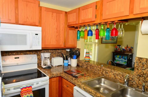 The Boli Townhouse is a two bedroom (a king bed in each bedroom), two full bath unit with the master suite on the second floor. The leather sleeper sofa also converts to a queen bed. There is a breakfast room, complete kitchen, guest bedroom, bath and large L shaped living room on the ground floor. The master suite on the second floor has a sitting area, TV and a complete bath.